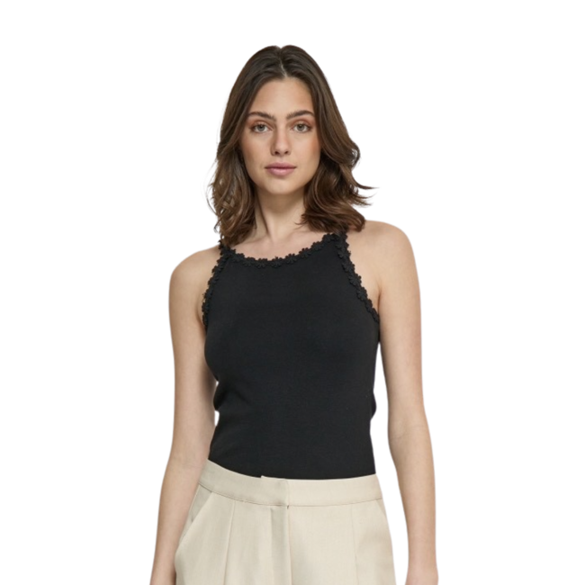 Manon 178 cm lang en draagt maat S.Kleur: ZwartMateriaal: 95% Katoen, 5% Elastaan