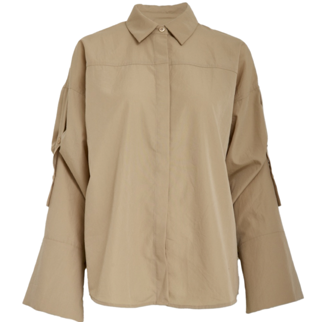 Deze bruine katoenen blouse is van het merk Peppercorn. De blouse heeft een blinde knoopsluiting en een geplooid detail op de mouwen. Lees meer.