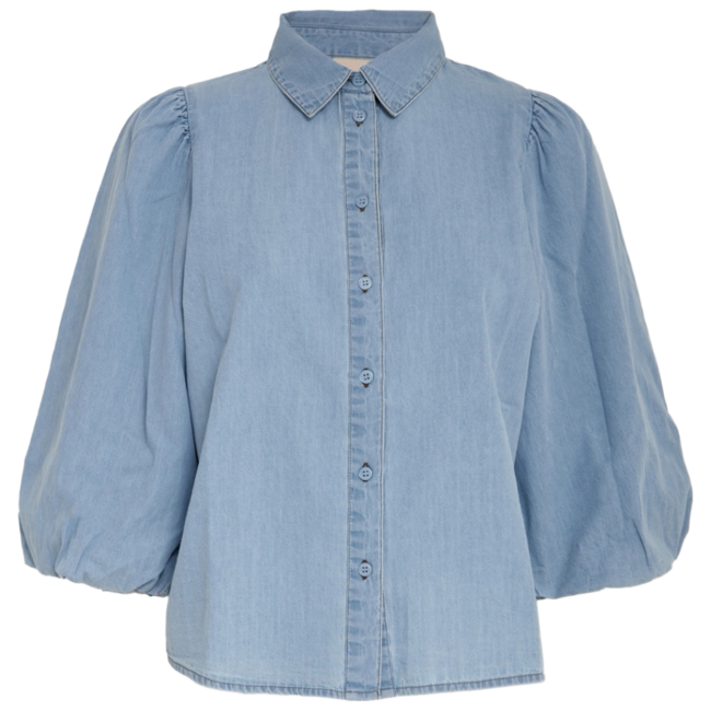 Deze katoenen jeans blouse is van het merk Peppercorn. De blouse heeft pofmouwen en een knoopsluiting.